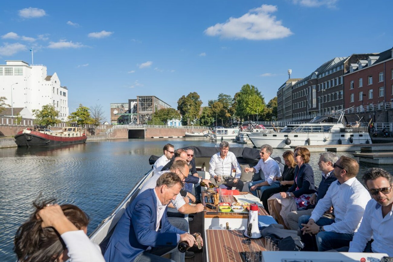 De jaarlijkse ledenvergadering werd gehouden op het water. Vanuit de historische binnenhaven van Maastricht ‘het Bassin’ vertrokken de kamerleden met een sloep richting Eijsden. Aan boord werd teruggekeken op het afgelopen jaar en volgden algemene beschouwingen gekeken naar de toekomst. Onder genot van een fantastisch verzorgd diner bij Vanille waren er openhartige gesprekken met de kamerleden onderling. Jacobs travel zorgde ervoor dat we weer veilig bij het Chateau St.Gerlach kwamen.
